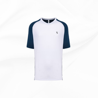 Nos t-shirts sont confectionnés à partir d'un mélange technique de 90% polyester et 10% élasthanne (92% polyester / 8% élasthanne sur la partie Birdseye), spécialement conçu pour allier confort, durabilité et liberté de mouvement.
